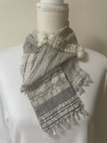 母と姉たちへのプレゼントと自分用に買わせてもらいました。各々好きなものを選んでもらう楽しい企画を考えました。それぞれの好きそうな色合いを選びました。選ぶのも楽しかったです。春先,これをつけると、気分が上がりそうです。 素敵なマフラーをありがとうございました。