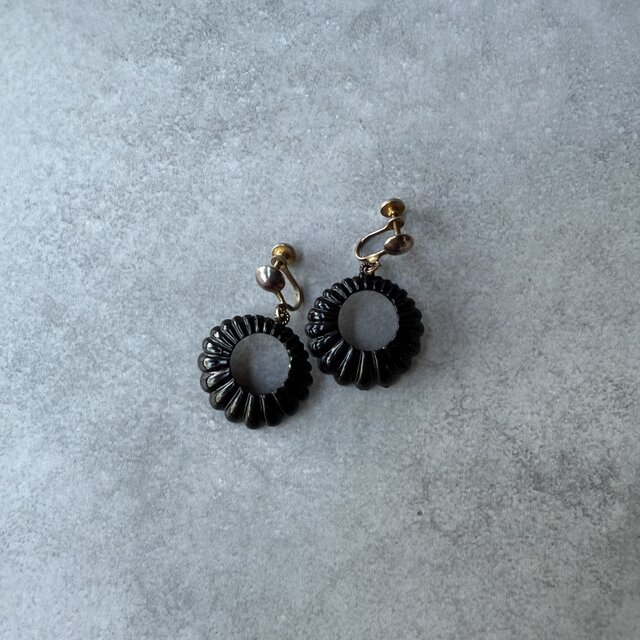黒の輪舞 ― 英国ヴィンテージ 七宝サークルイヤリング(1950s)