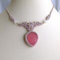 インカローズ(アルゼンチン産)ロードクロサイト・ローズクォーツ(ブラジル産)天然石マクラメ編みチョーカーネックレス 3688