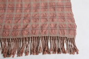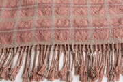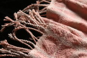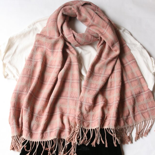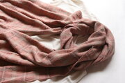 ピンクを中心とした色の配置ですが、草木染らしい落ち着いた色味なので優しい印象のテキスタイルとなっています。