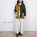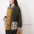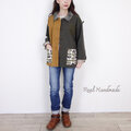 前身頃の半分を香ばしいトーストブラウンのコットン生地で切り替え、