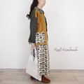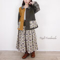 北欧ペンペン草柄とカーキのヨーク切替ギャザースカート(セットアップ可)