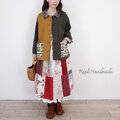 [Coordinate] リネンパッチティアードスカート☆ポピー・レッド