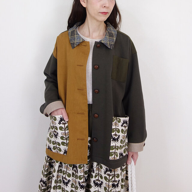 トープ裏毛とトーストブラウンの北欧風ドロップジャケット(セットアップ可) │お花見 ドライブ お出かけ コットン 旅行