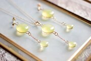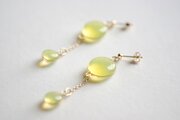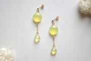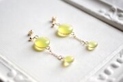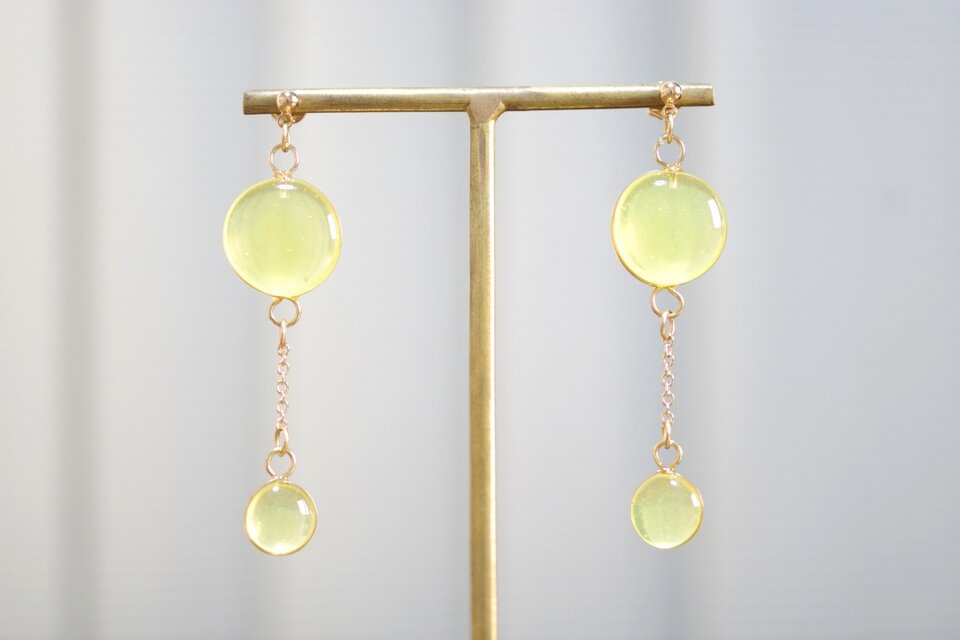 ぷっくり張りつめた大小の水滴のようなレジンの透明感に魅入ってしまうピアス。