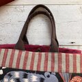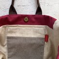 マチはしっかりした帆布、肩紐はダークレッドです。