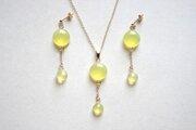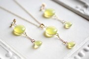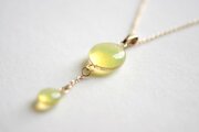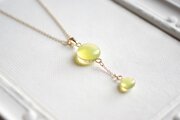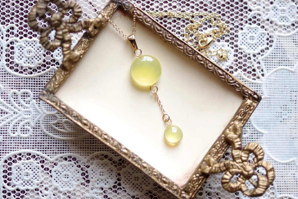 ぷっくり張りつめた大小の水滴のようなレジンの透明感に魅入ってしまうペンダント。