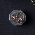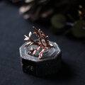 植物や鉱物など、金属ではないものの表面に電気メッキをかける技術。儚く枯れてしまう植物を金属に変えることでその時間と美しさを留めることができる、錬金術のような技法です。金属の層を厚くすることにより、強度も保たれます。