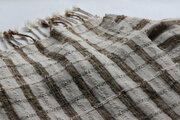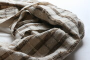 オーガニックコットンとは一定期間農薬や枯葉剤を使用していない土壌で育てられたコットンで、柔らかく肌さわりがとても優しいです。一方でショールで使うにはハリが出ないのですが、ワイルドシルクとリネンも合わせることでショールとしてのテキスタイルにちょうど良い風合いを作ることができました。