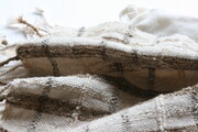 繊細なテキスタイルとなっています。アクセサリーやバッグなどの金具に引っかかると引きつりが起こりますのでご注意ください。また、糸の特性上、ネップがあり細かな繊維が出てきます。気になる場合は優しくハサミでカットしたりスチームアイロンをかけると徐々に目立たなくなっていきます。