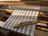 貴重なインドで手紡ぎされたワイルドシルクと、オーガニックコットン、リネン、干し藍で草木染したシルクを使って手織りしました。