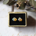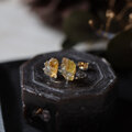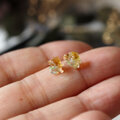 原石のオパール、イエローサファイア、ムーンストーンが共生し結晶した、創造上の鉱物「Unionite」のミニピアス。