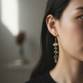 みずみずしい天然石と金の葉が連なって揺れるピアス。