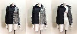 素敵なブラウスが届きました。首元の黒いトリミングがとても効いていると思います。デザイン画のように黒いロングスカートと合わせて、足元はパンプスで気合を入れて。動きやすいのもいいですね。ありがとうございました。