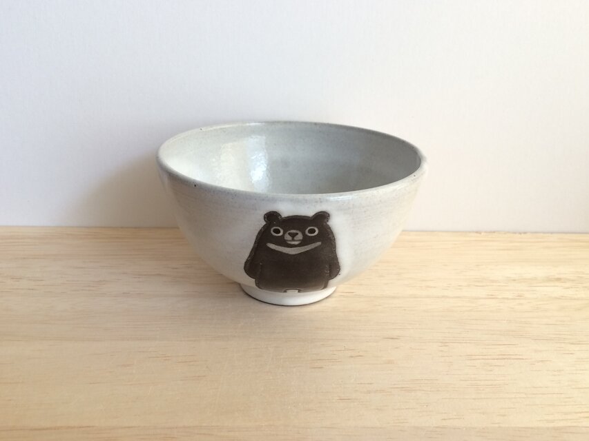 クマは陶磁器用絵具で彩色し透明釉、輪郭部分は無釉で使用した土の色です。