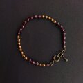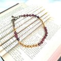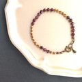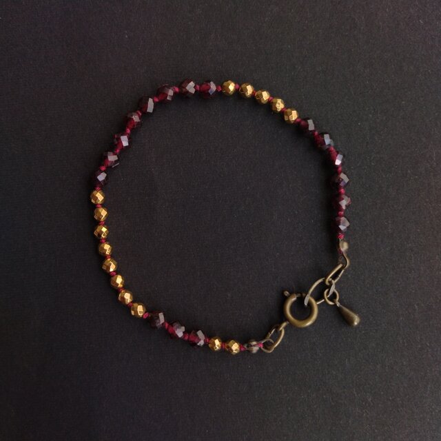 美しい輝きのモザンビークガーネットとゴールドコーティングされたヘマタイトを組合せた、落ち着いた中にも華やかな印象に見せてくれる大人シックなデザインブレスレットです。カッティングされた粒は室内でも輝いて美しいです。