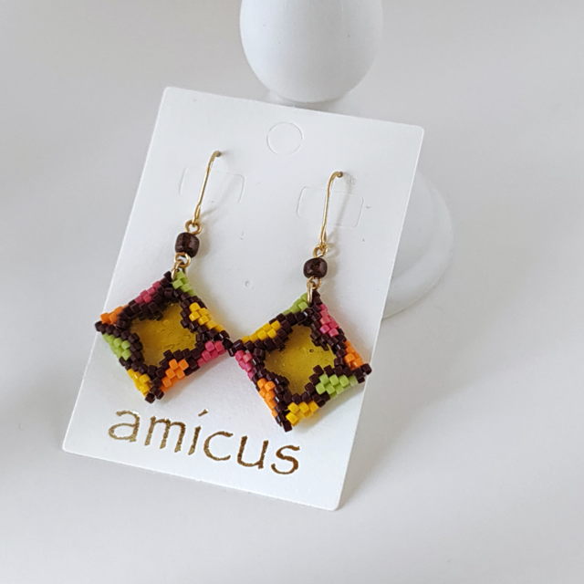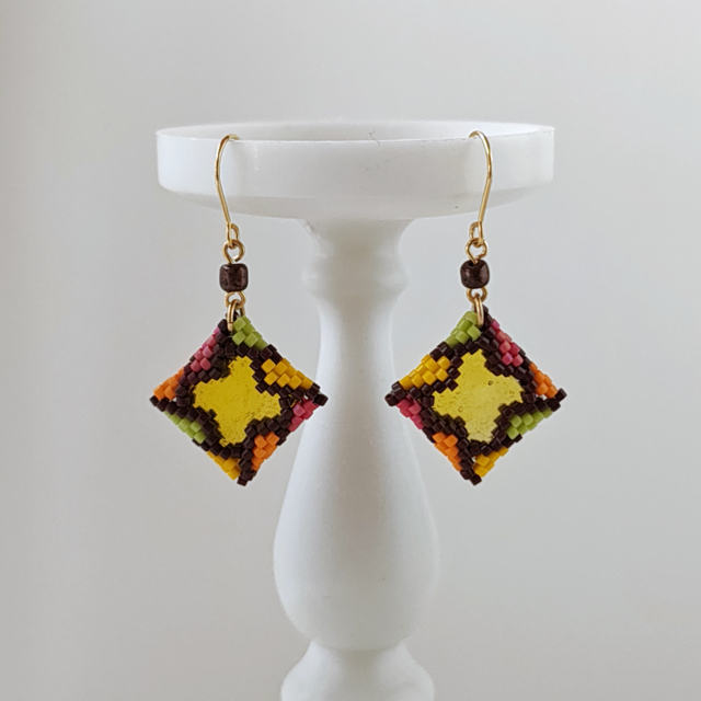 レモン色のガラスタイルをペヨーテステッチでくるみました