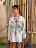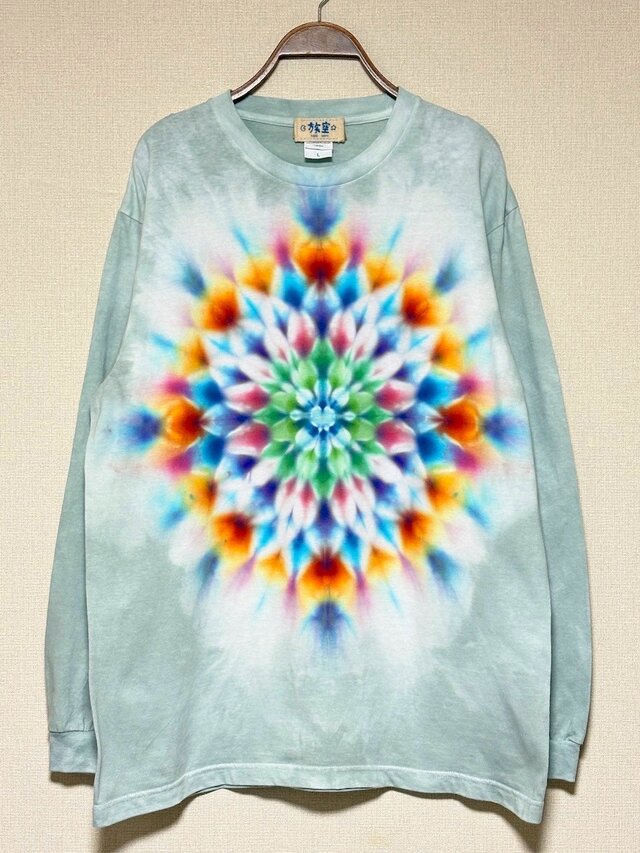 タイダイ 長袖 Tシャツ Lサイズ 曼荼羅模様 ブルーグレイ HD25-52