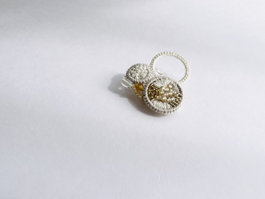 【2個セット 縁ーenー】手刺繍 軽いつけ心地のブローチ LホワイトとSシルバーb012作品が届きました。繊細な刺繡とガラスビーズ、思っていた通りステキです。 いろいろな組み合わせができそうで、楽しみです。 ありがとうございました。