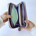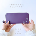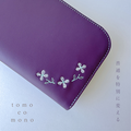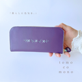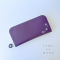 エコレザー × 刺繍革財布『hana*hana』PLUM/パープル(牛革)長財布☆ラウンドファスナー☆