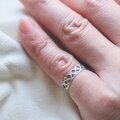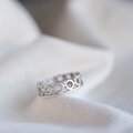 透かし部分が指元にやわらかな影を落とし、角度によってさりげなく表情が変わります。