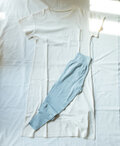 こちらは無染色のワンピースと、ジュニパーベリーで染めたブルーグレー色のレギンスのお得なセットです。