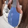 持ち手はデニム調綿麻、その裏側はストライプです。