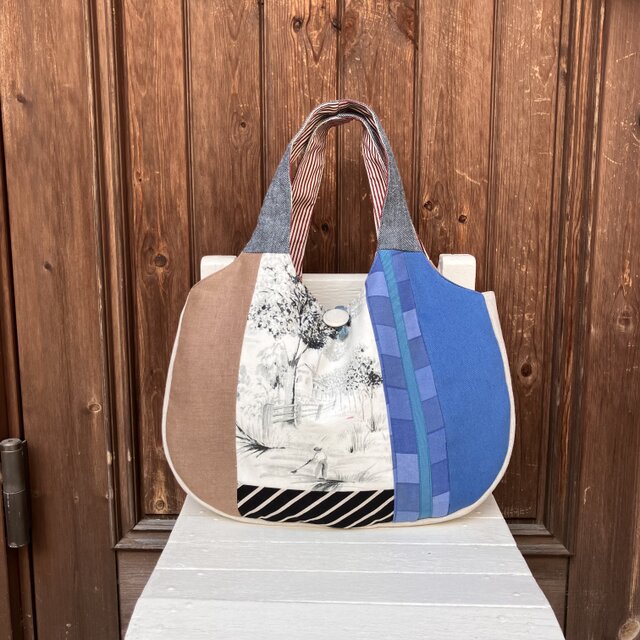 ふっくらグラニーバッグ 風景画とブルー
