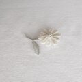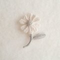 お出かけにナチュラルなアクセント マーガレットみたいなお花ブローチ コサージュ 刺繍糸のかぎ針編み グレーベージュ ビーズ