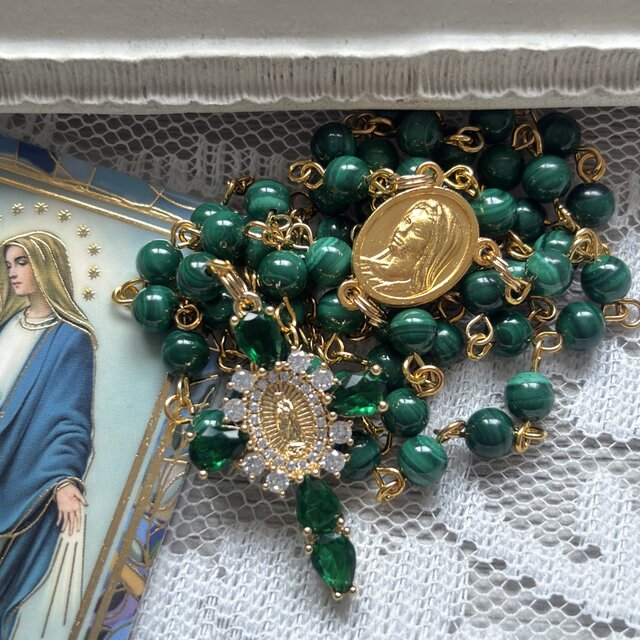 お品受取りしました。2つ共に良い出来上りで、丁寧に包んで下さり有難うございました。 このような大きな玉とメダイで大変だったのではないかと申し訳なく思います。