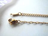 ①ステンレス製のデザインチェーンネックレスをお付けしています。(既製品)