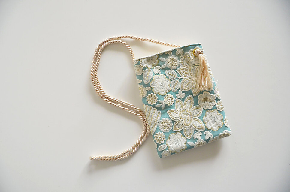 『持つだけでコーディネートのワンポイントになる春らしい色合いの上品な1点限定のスマホポーチ』