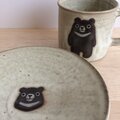 クマは陶磁器用絵具で彩色し透明釉、輪郭部分は無釉で使用した土の色です。