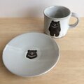 黒土製。カップと皿のセットです。