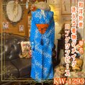 【 単衣着物リメイク ロングワンピース/ドレス/洗える化繊 帯サッシュベルト 露草色の旋風 × 咲きこぼれる桜 KW-1293】