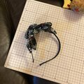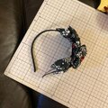 【着物リメイク ハンドメイド おりぼん ティアラ ヘッドドレス カチューム カチューシャ ヘアアクセサリー 和洋折衷 レトロ 和ロリータ 墨の庭園 × 漆黒のパールワーク RT-112】