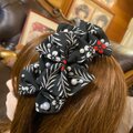 漆黒の地に、繊細な白い草花が舞うリメイクカチューシャです。ボリュームのあるリボンに、ランダムに配されたパールが光の点を添えます。
