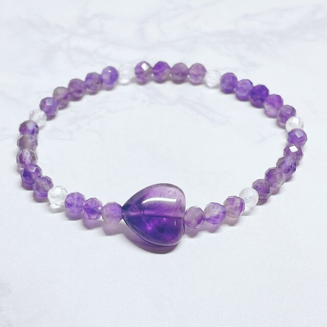 ✦新しい環境や責任ある立場に◎不安や緊張にそっと寄り添う 天然石ブレスレット|アメジストハート・水晶 No.854