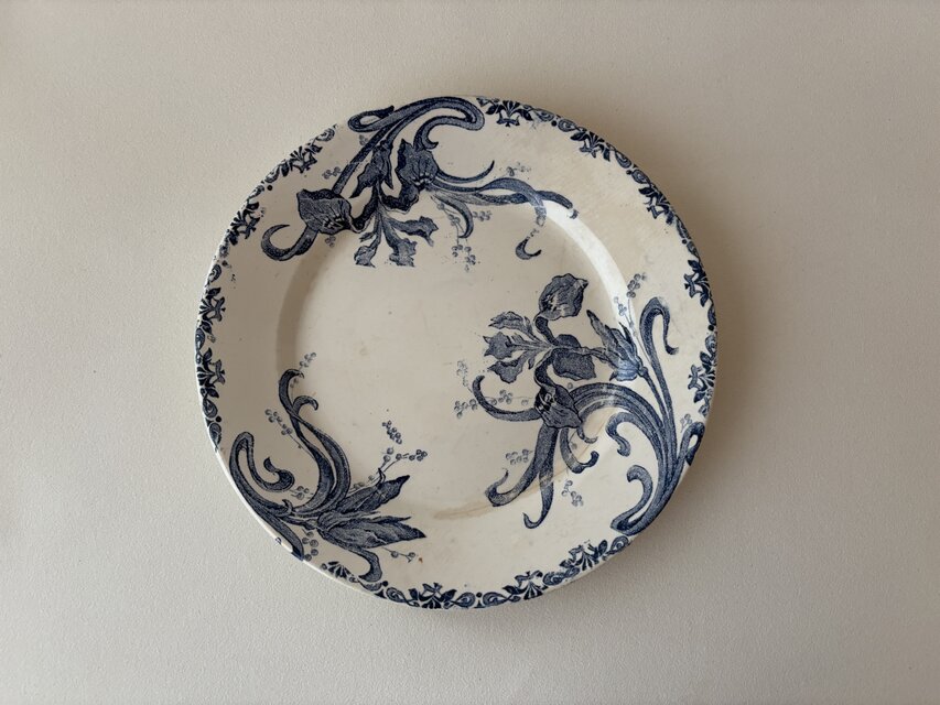 1900年頃、フランスの優雅な時代背景を感じさせるアイリス(アヤメ)の絵柄が美しい