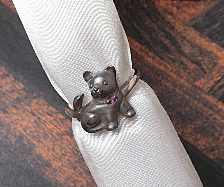 天然ルビー・子犬リング(黒)/日本製