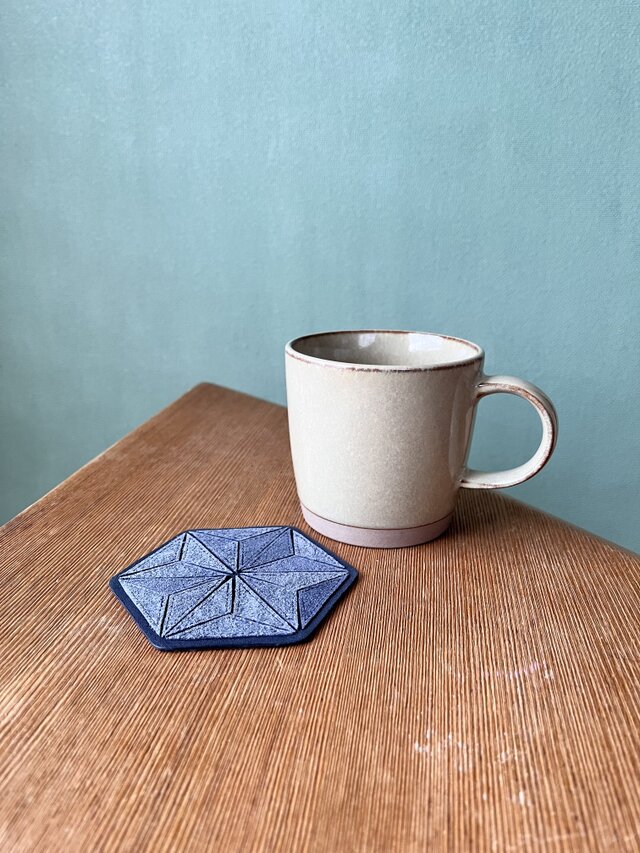#麻の葉模様 #縁起物 #革コースター #レザークラフト #引越し祝い