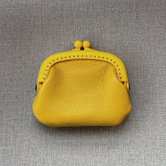 プラスチックの口金に、本革のボディの可愛いがま口です。