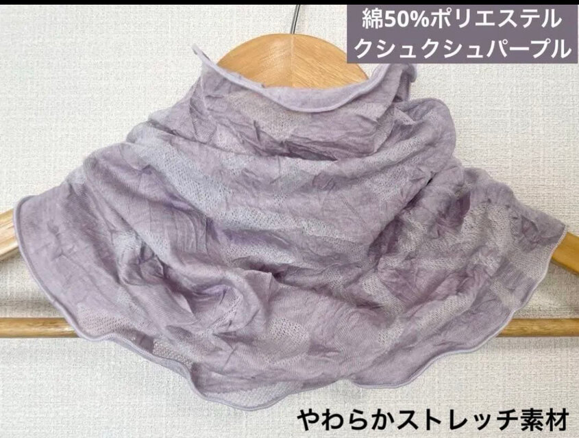 さらさらクシュクシュ綿50%パープルハンドメイドネックウォーマー、日焼け止めにも