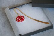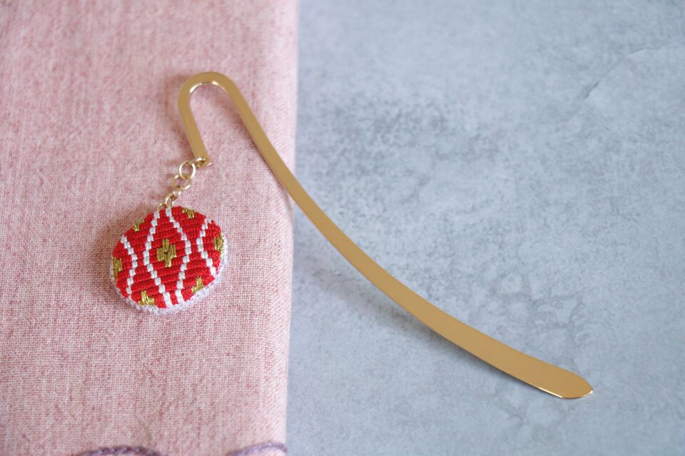 直径2.5cmの刺繍チャームを金属製ブックマーカーに合わせました。