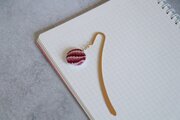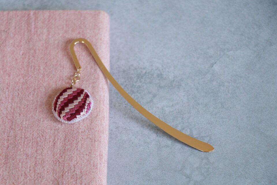 直径2.5cmの刺繍チャームを金属製ブックマーカーに合わせました。