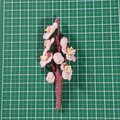 このコサージュは、満開の桜の花を模したデザインで、優しいピンクとホワイトのグラデーションが特徴です。花びら一枚一枚にこだわり、リアルな質感を再現するため、上質な素材を使用しています。光に当たるたびに、微妙な色合いが美しく輝き、見る人の心を惹きつけるでしょう。