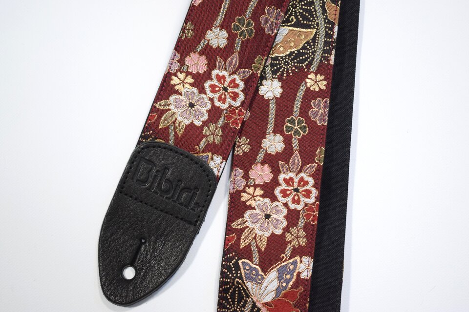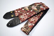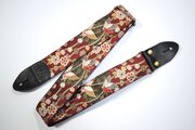 蝶と霞 帆布ギターストラップ(赤)京都金襴