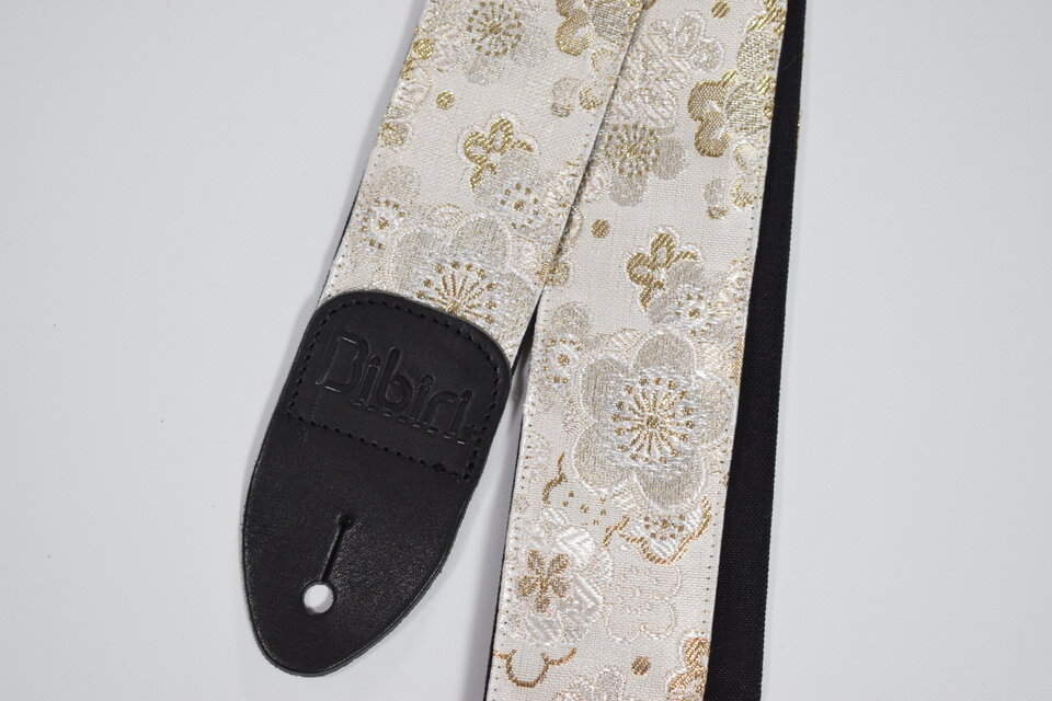 モダン梅 帆布ギターストラップ(白)京都金襴