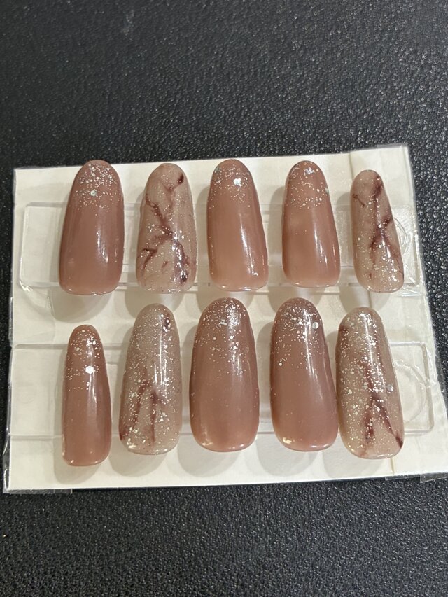 繊細なラメと大理石風デザインを組み合わせたネイルチップです。