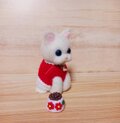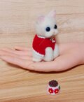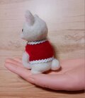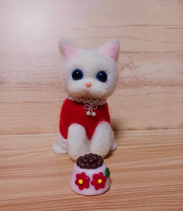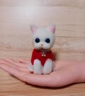 青い瞳が魅力的な白い子猫の羊毛フェルト人形です。
